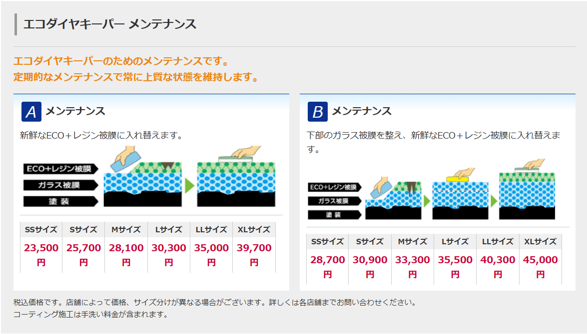 当店人気No.1のコーティングです! 近年販売されているお車の特徴では無塗装樹脂のパーツを使っている車種が多くなっていますね!! 納車してから数年経ち樹脂パーツが白ぼけできたとお客様から相談を頂きます。 手洗い洗車、コーティングをご利用の際に一緒に施工されることをオススメいたします!! ボディコーティング・窓ガラスのコーティングを塗る前に、 今まで付着していた汚れを取り除くための作業として ご案内させていただきます。 ※一部取り扱いが無い商品もございます この施工証明書をどんな時に使うかと言いますと、 『事故』などで保険を使って板金塗装をした時に使えるんです。 板金塗装をすると必ずコーティング被膜は無くなってしまいます。 それを保険を使って補修することが出来るんです。 保険を使えるかそうかは保険会社に確認する必要がありますが、 もしもの時はこの施工証明書を保険会社にご提示ください。 当店で保険を使って補修コーティングを行います。 コーティング商品につきましては代車をご準備させて頂きます。 上記コーティング商品のフレッシュキーパー・エコダイヤモンドキーパー・EXキーパーの3商品を対象とさせて頂きます ご予約が重なる場合は、ご予約順となります。 当社の近くの店舗から代車を借りる等の努力は致しますが、繁忙期等は代車がご準備が出来ない場合もございます。 繁忙期は余裕のあるご予約にご協力をお願い致します。 事前予約電話番号 082-422-1127 自社工場で専任技術者が丁寧に施工してます!! 保険修理に対応しています!! Q:コーティングの予約は当日でもできますか? A:当日のご予約でも大歓迎です。 ご予定の時間での作業を一度店舗にご相談下さい^^ TEL 082-422-1127 *お問い合わせの際は、『キーパーのページを見た』とお伝え頂くとスムーズです。 Q:コーティング作業の間、代車は用意してもらえますか? A:無料で貸し出しております。 代車がご用意できない場合もありますので 代車の空きを、お問い合わせいただけると確実です^^ Q:車に気になる汚れがあるんだけど、、、 A:私達にお任せ下さい。 電話などで判断しかねる場合、ご一緒にお車を見ながら最適なコースをご提案させていただきます^^ Q:当日の天気予報が雨だけど、そんな日にコーティングをして影響は無いですか? A:全く問題ありません。 雨の日の施工や施工後に雨が降っても全く問題ありません。 品質が変わることもありませんので、ご安心下さい^^ Q:支払いはカードも使えますか? A:ご利用いただけます。 ご利用いただけるカードの種類に関しましては大変お手数ですが、 当店にお問い合わせ下さい。 Q:コーティングの予約はWEBでもできますか? A:WEBのご予約でも大歓迎です。 当店では楽天コラボもやっております。 以下リンクからご覧ください。
