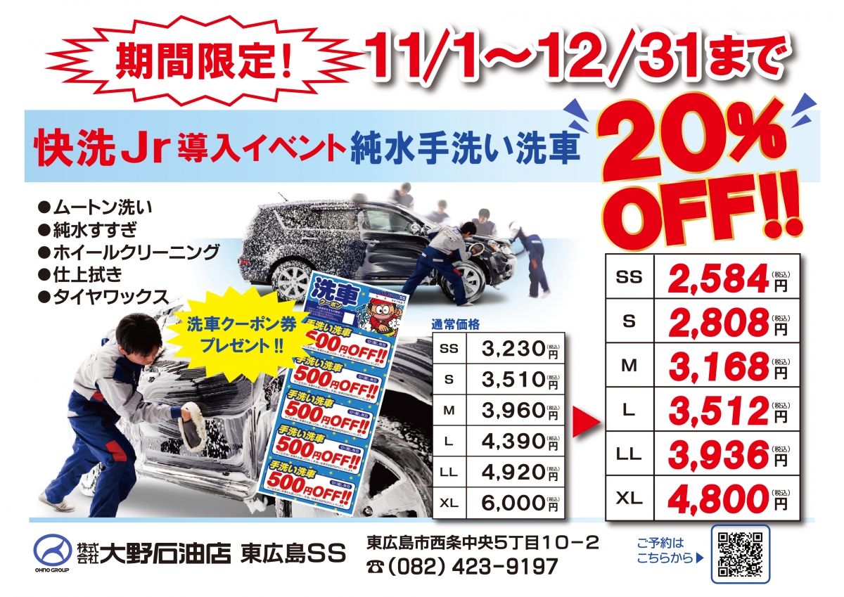 お電話なら当日予約OK!現在の空き状況をお伝えしますので空きがあればすぐに洗車できますよ♪
