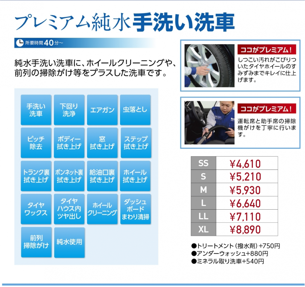 純水手洗い洗車メニュー