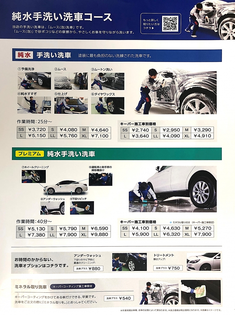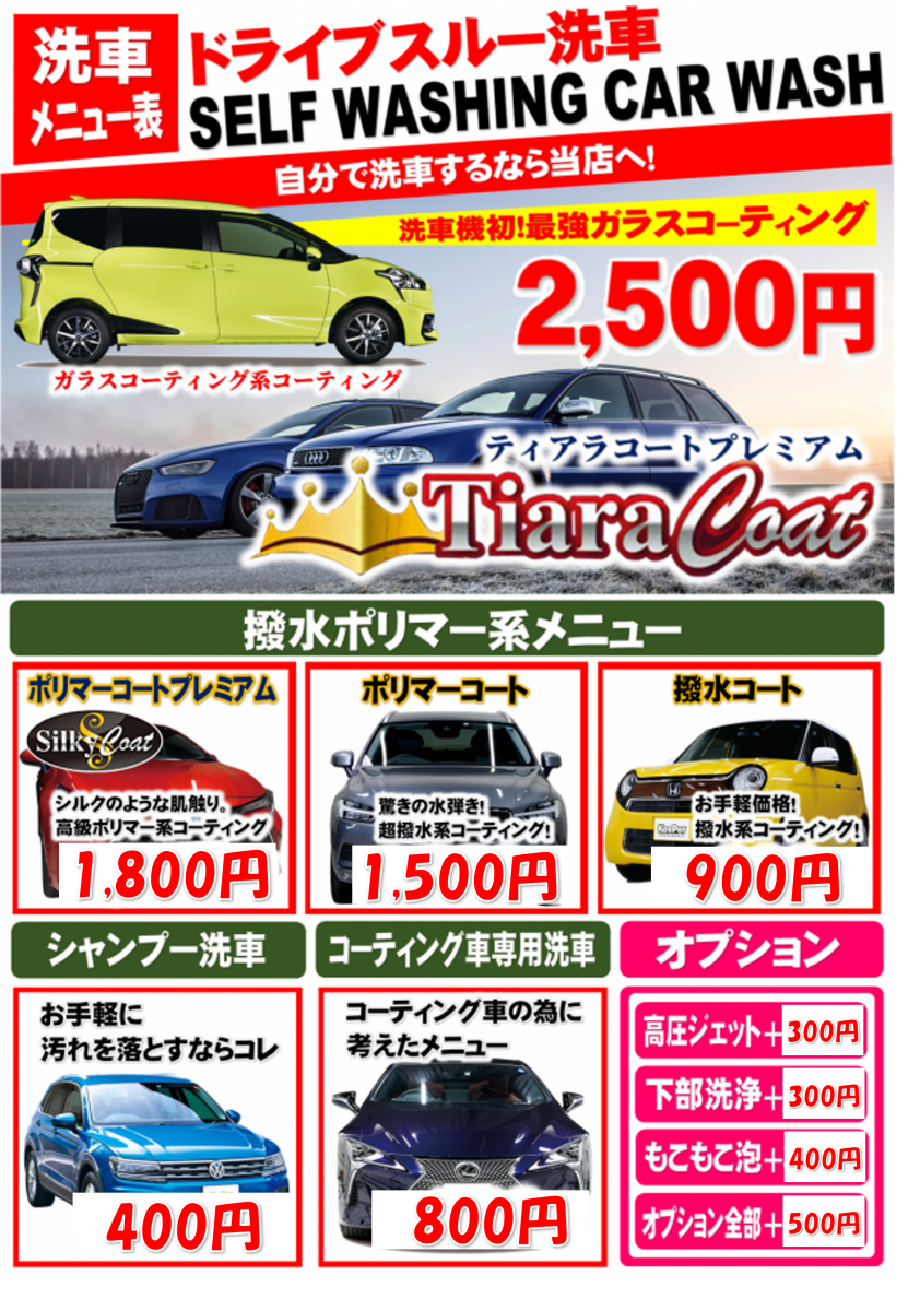 2号大野SS 手洗い洗車メニュー