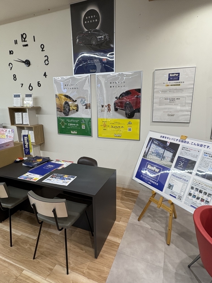 コーティング・洗車専用商談カウンターも設置しており、しっかりお客様のご要望、お話をお聞きします。