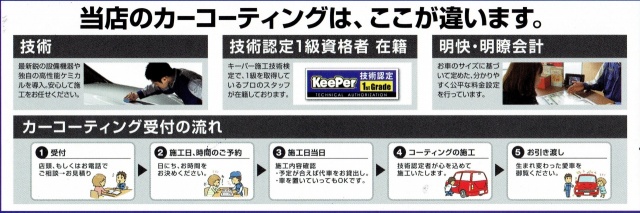 ダイアモンドは永久の輝き・・・・とまでは行きませんが、毎年メンテナンスで5年、ノーメンテナンスでも3年のロングライフコーティングです。ガラス特有の艶をぜひ体感してください。