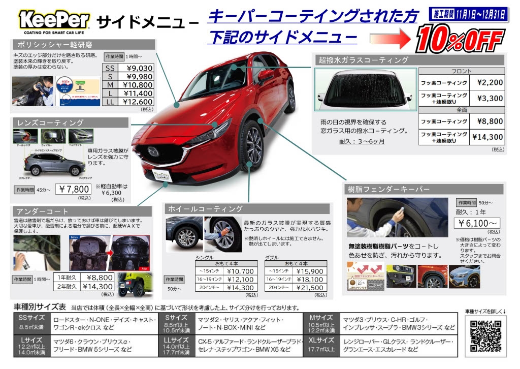 コーティングついでにオイル交換やタイヤ交換等の作業も!