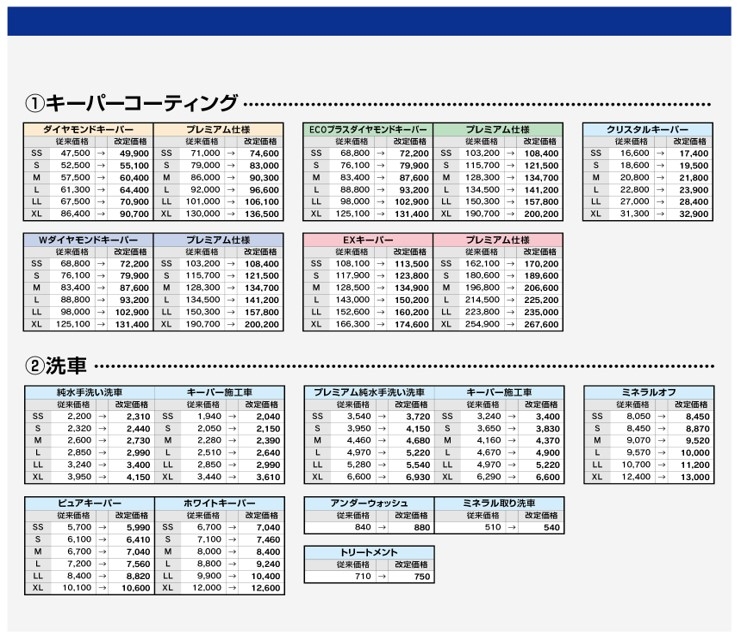 ※EXキーパーシリーズ、その他一部アラカルトメニューは対象外となります。予めご了承下さい。