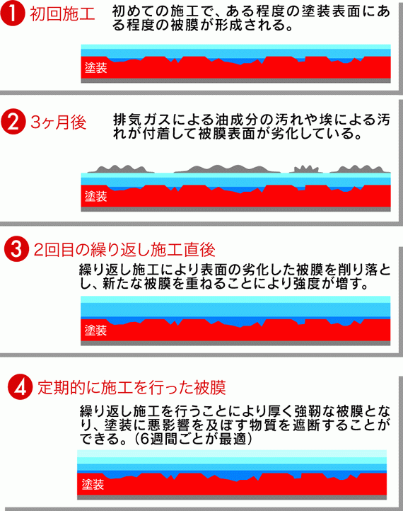 コーティング被膜の強化を進めて塗装がどんどん良くなる「塗装面改善の方向性」を持ちます。