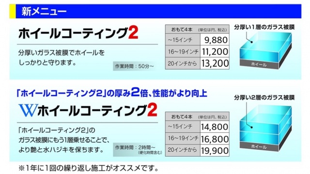また耐熱性・防汚性に優れた「ガラス系コーティング剤」を使用することで、ホイールをしっかりガード!