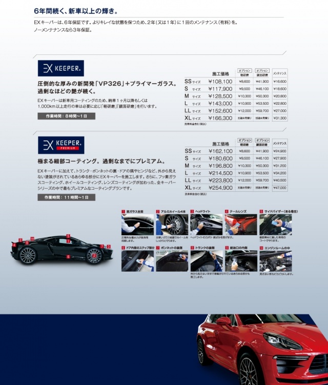 EXキーパー資格者2名・1級資格者3名・2級資格者1名在籍しており、コーティングには絶対の自信がありますのでお任せください!!