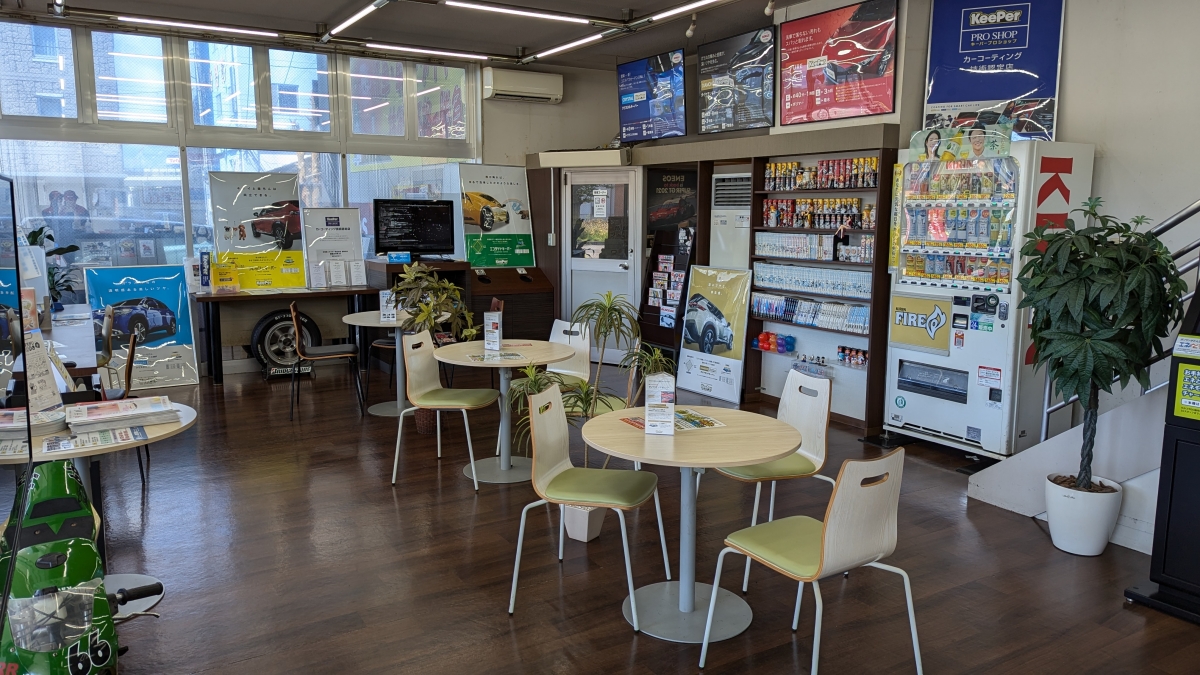 コーティング、カーケアでお待ちいただく間ごゆっくりおくつろぎ下さい。