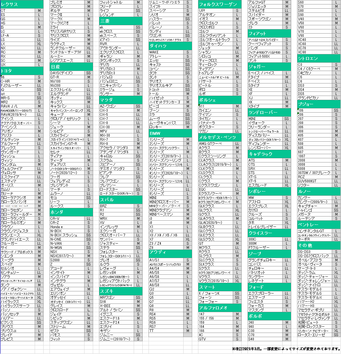 表に載っていない車種をお乗りの方は是非お電話やご来店お待ちしております♪