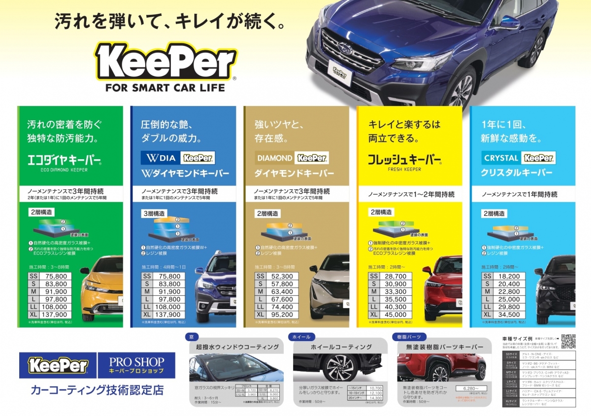 また、お客様のお車に合ったコーティングをご提案し、お客様のカーライフをサポートさせて頂きます。