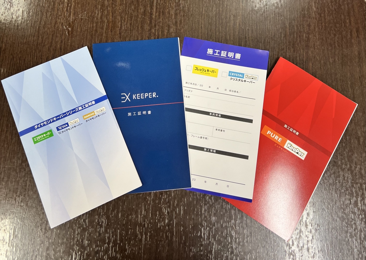 日常メンテナンスの管理や万が一の事故などでの再施工や部分施工など各保険会社に対応可能ですので大切に保管してください。
