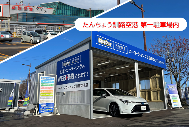 「キーパープロショップ釧路空港店」では、釧路空港駐車場をご利用の間に、お車をお預かりしてキレイに仕上げるサービスを提供しています。