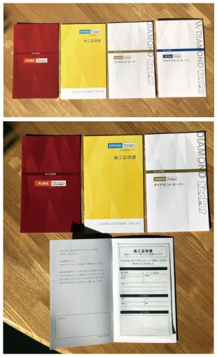 キーパーコーティングを施工されたお客様へ当店で作業を行った、施行証明書を発行しております。再施工や傷など、証明書よりトラブルへ安心してスムーズにご対応いたします。