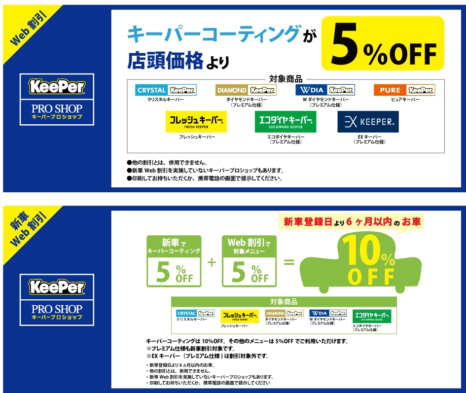 対象コーティングがお得に施工できる、ウェブ限定クーポンです。