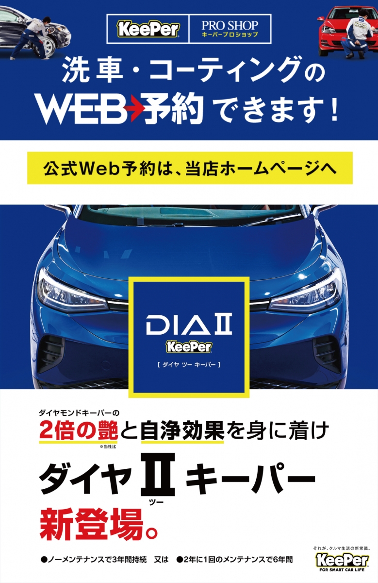 ※現在、繫忙期に伴い10月~翌年1月の洗車とピュアキーパーの予約が取りづらい場合がございますので、お電話にて、日程調整させて頂く事をご了承ください。