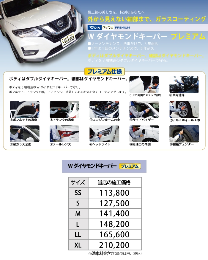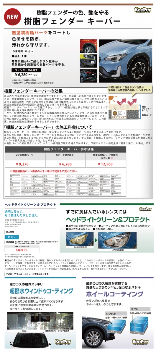 ※現在、繫忙期に伴い10月~翌年1月の洗車とピュアキーパーの予約が取りづらい場合がございますので、お電話にて、日程調整させて頂く事をご了承ください。