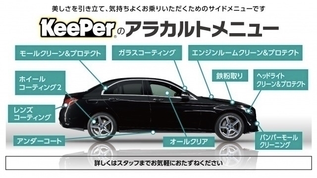 お車のボディーの状態や、ご予算、ご希望に合わせたコーティングをお選びいただけます。