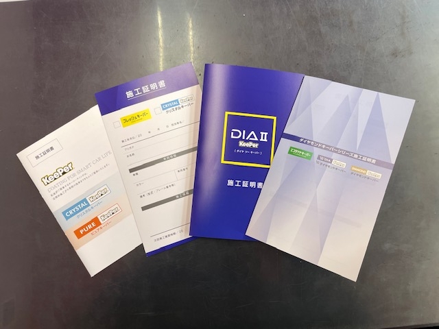 各種コーティングには施工証明書を発行しております♪