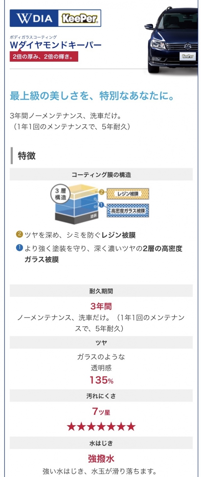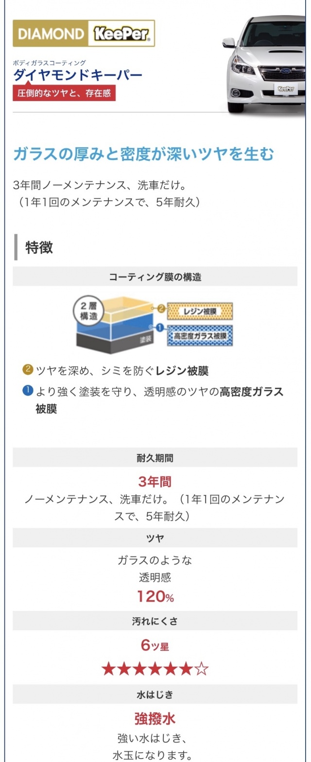 ダイヤモンドキーパー同様に1年に一回のメンテナンスで5年耐久