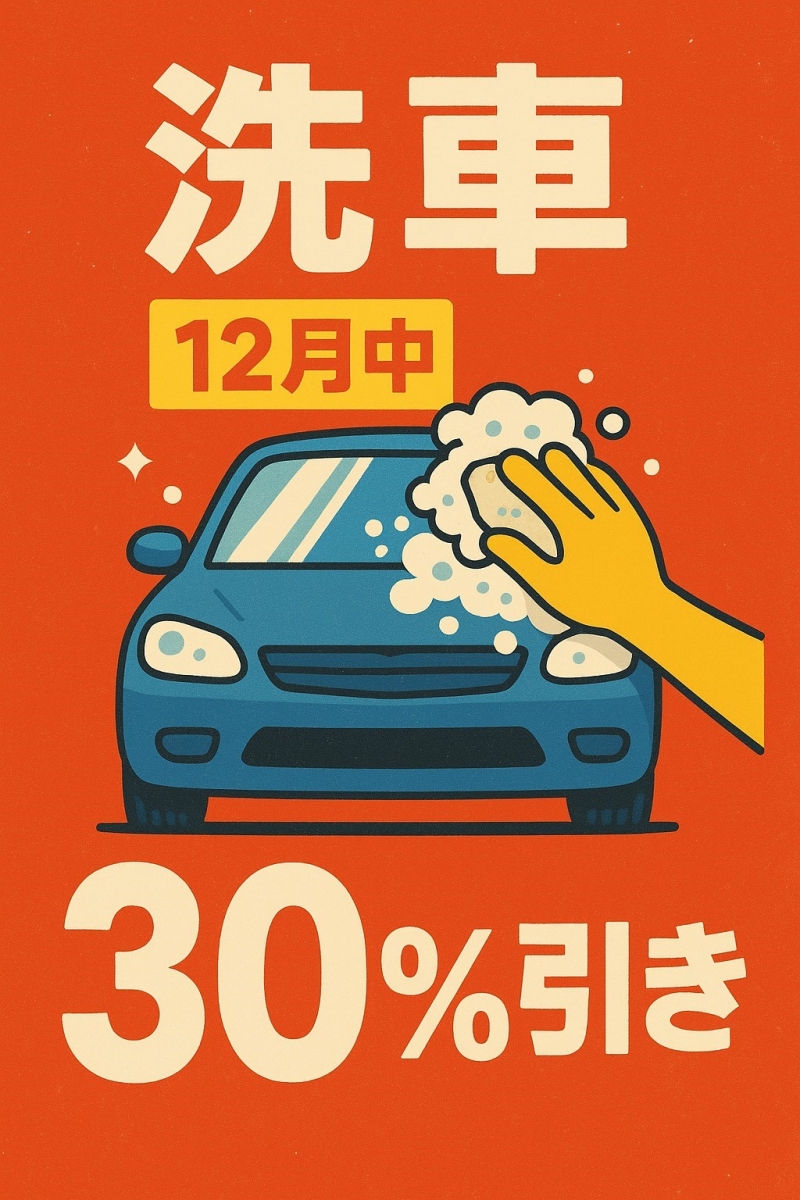 12月限定で洗車割引キャンペーン実施中!ご予約はこちらをタップ! ↑↑