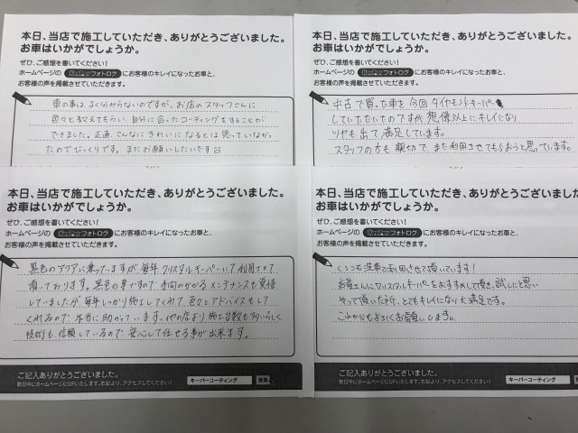 ガラスコーティングを施工して頂いたお客様から多数の感謝の声をいただいております。