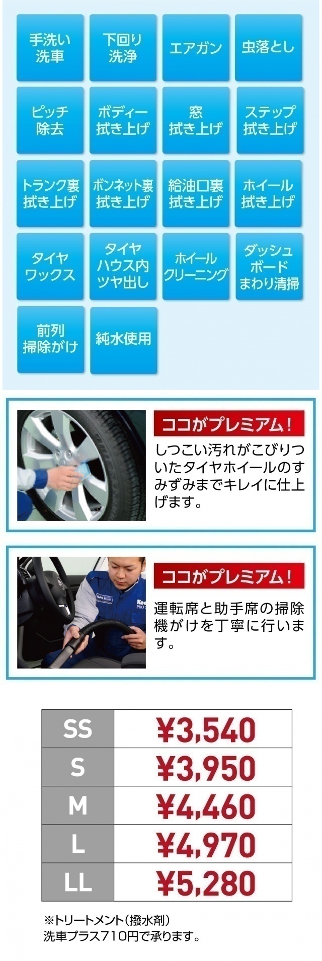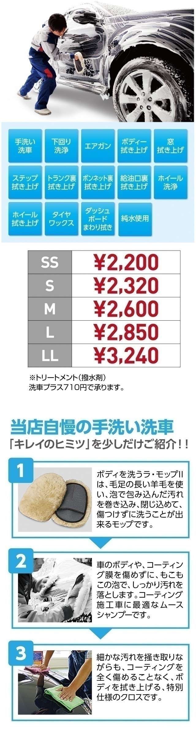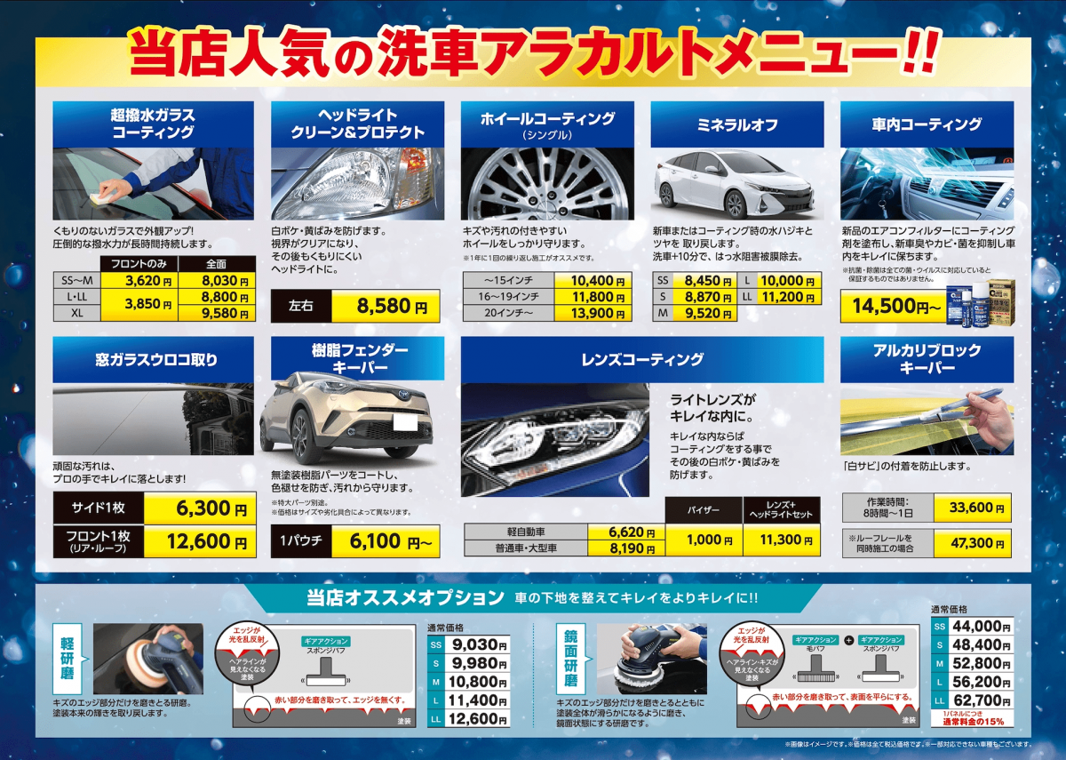 手洗い洗車メニュー