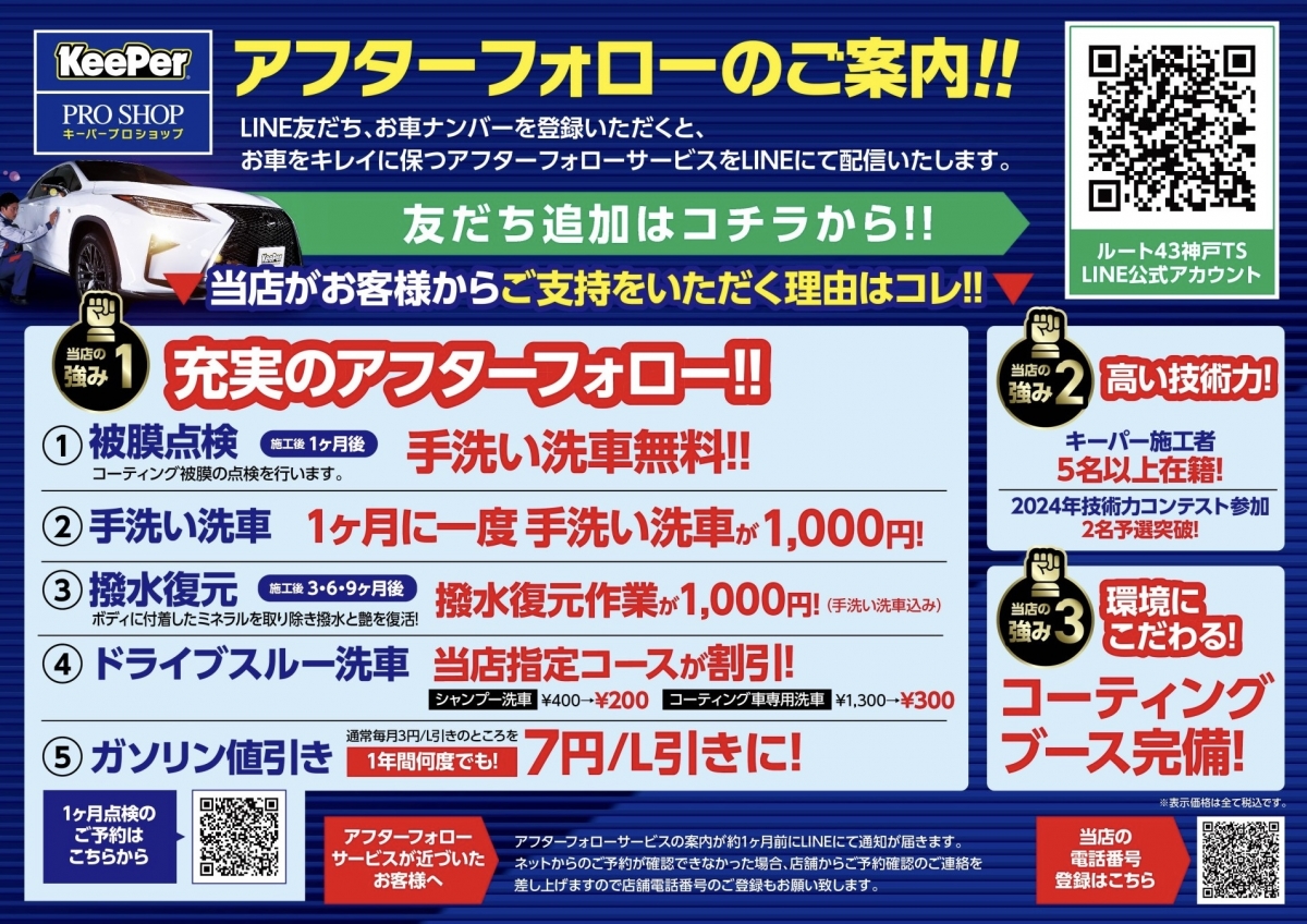<当店の強み> 当店でキーパーコーティングをご施工頂いたお客様限定特典 LINE追加は画像をタッチ!!