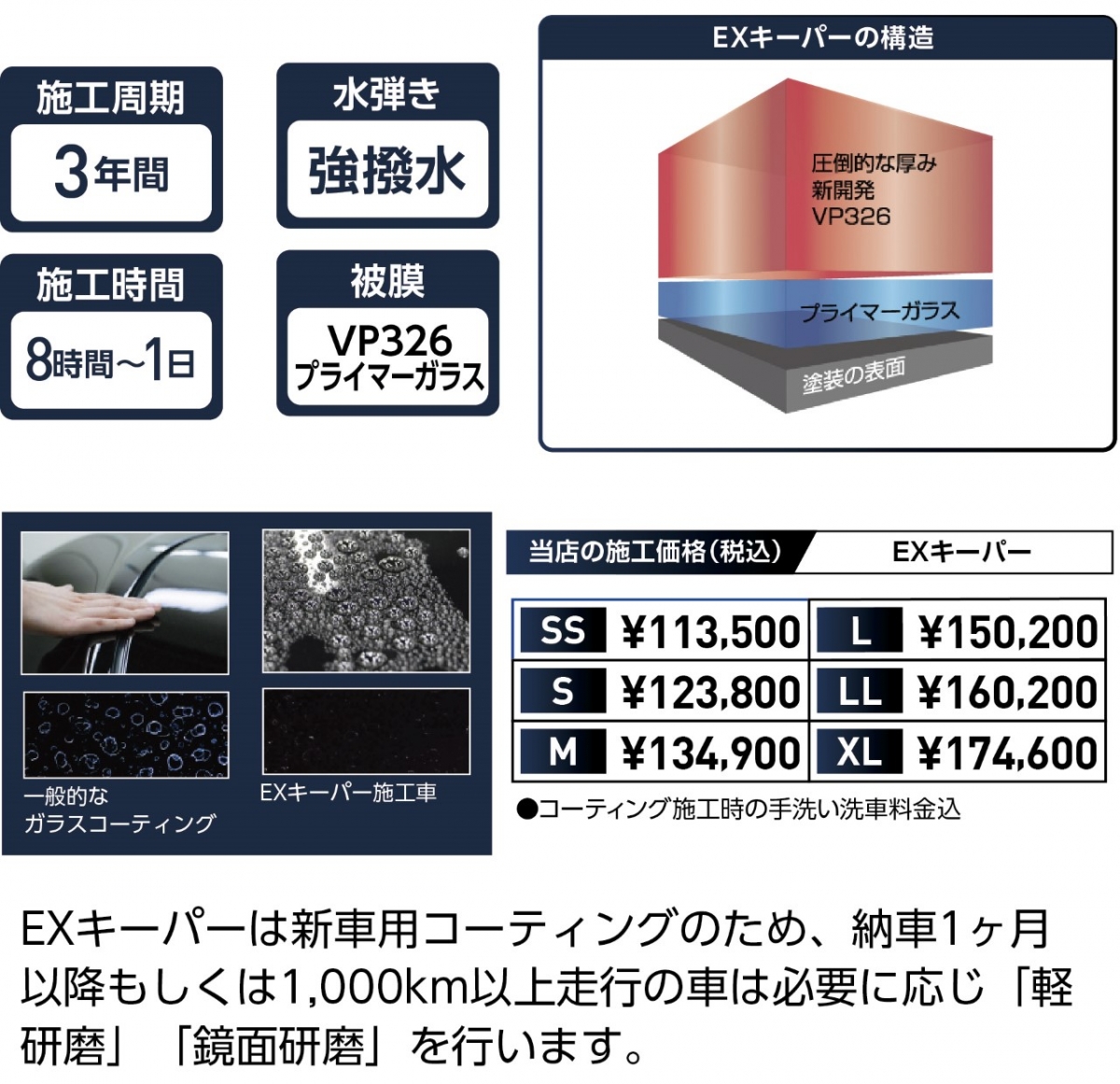 こちらのクーポンをご掲示して頂くと、キーパーコーティング料金をすべて5%OFF。新車登録より6か月以内のお客様は10%OFFさせて頂きます。※EXキーパー対象外。