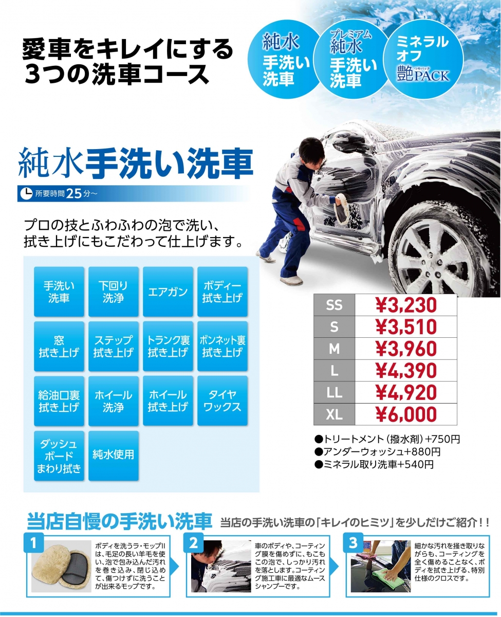 A:水洗い、またはシャンプー洗車で十分キレイになります。もちろん、ドライブスルー洗車機に通して頂いても、全く問題ありません。ただし、洗車後の水滴は【必ず】拭きあげて下さい。