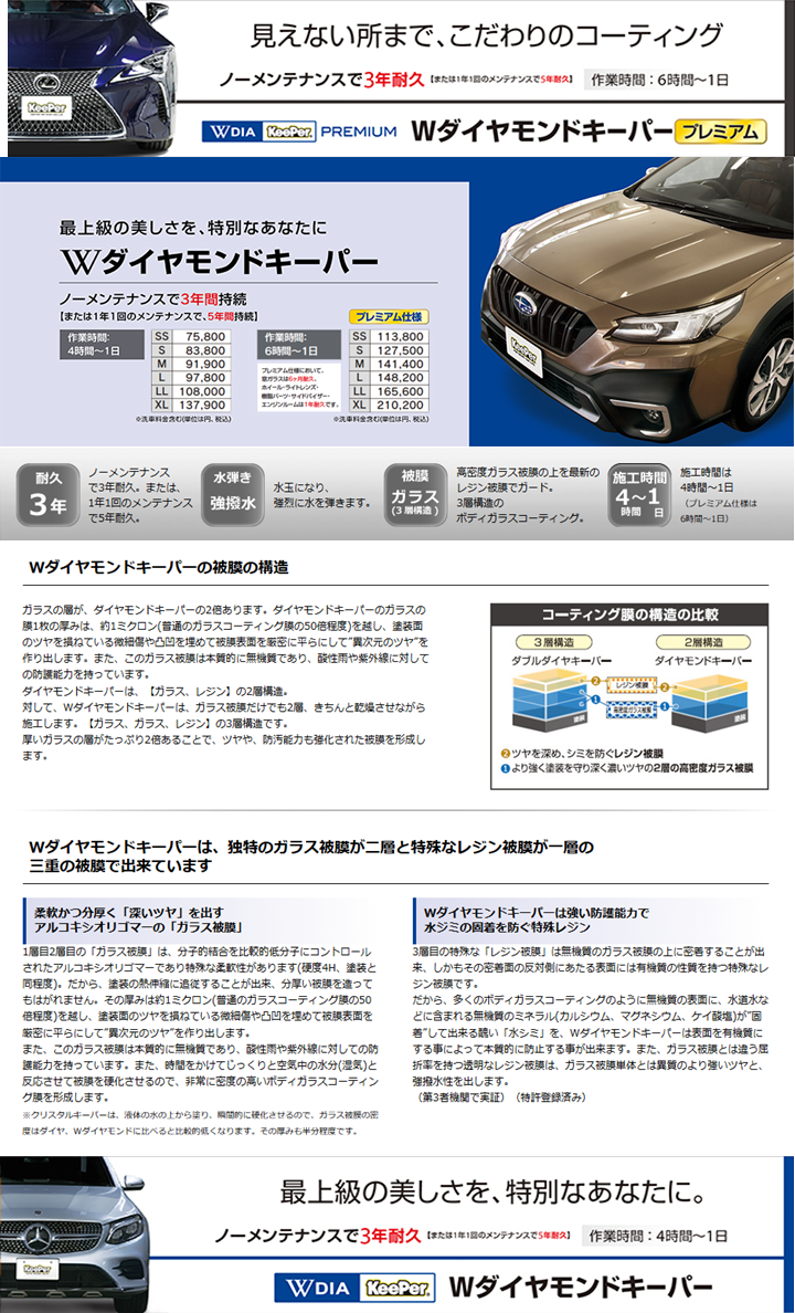 キーパーコーティングは、塗装を守るだけでなく、そのキレイを長くキープ致します。
