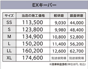 当店ではキーパーコーティングを多数取り扱っています。また、オプションメニューとして窓ガラスやアルミホイール、樹脂フェンダーのコーティングまで、豊富に取り揃えています。