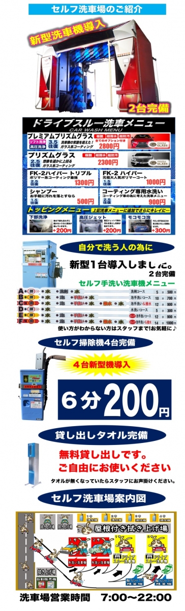 手洗い洗車・エンジンルームクリーン・室内清掃・除菌抗菌消臭・シートクリーニング