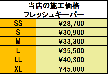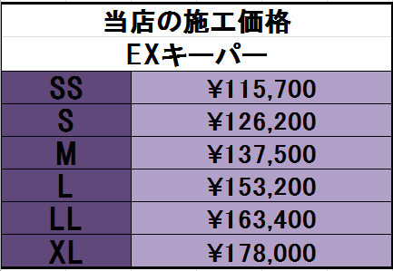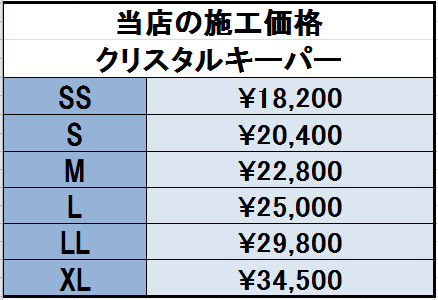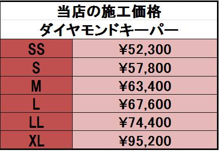 キーパープロショプでは、お車の大きさに応じて施工料金が変わります。
