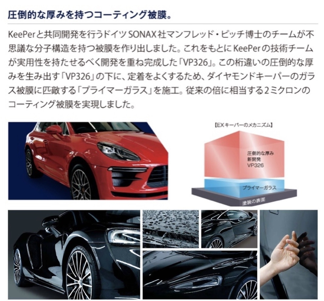ガラスはクリスタルキーパーと同じですが、 撥水の被膜がECOダイヤと同じものを使用。