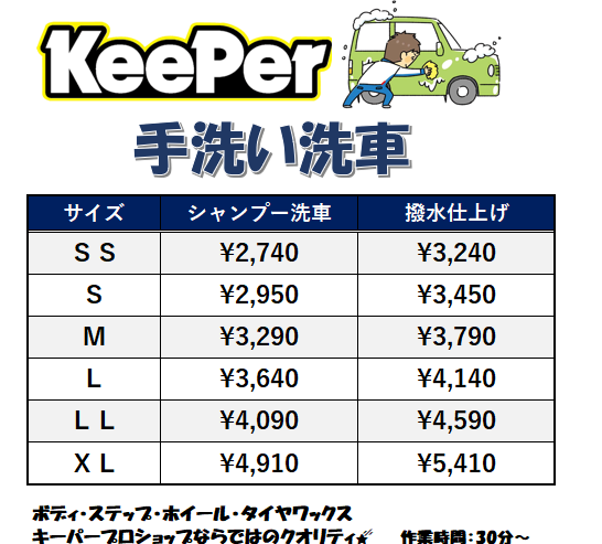 手洗い洗車メニュー