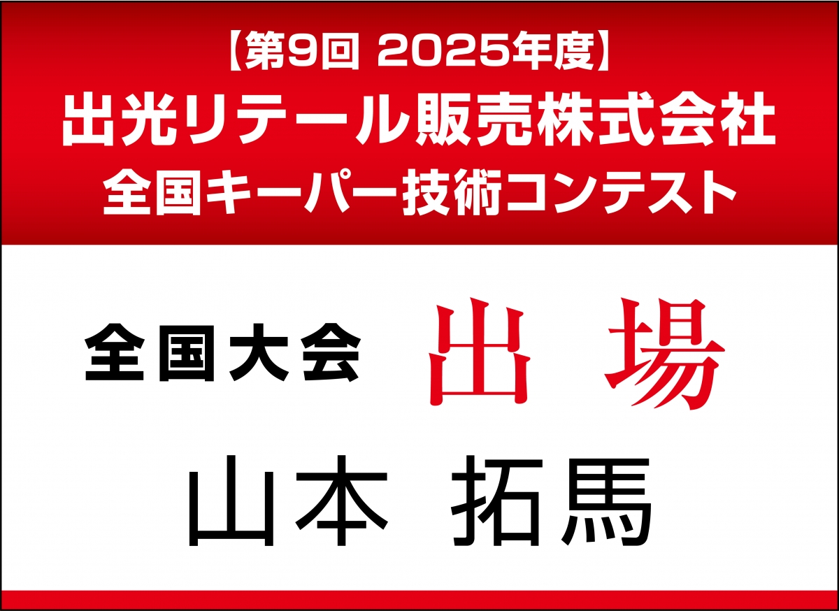 今年もキーパー技術コンテスト兵庫県チャンピオン決定戦に当店から3名出場し、当店責任者のやまもとが3位に入賞することができました!