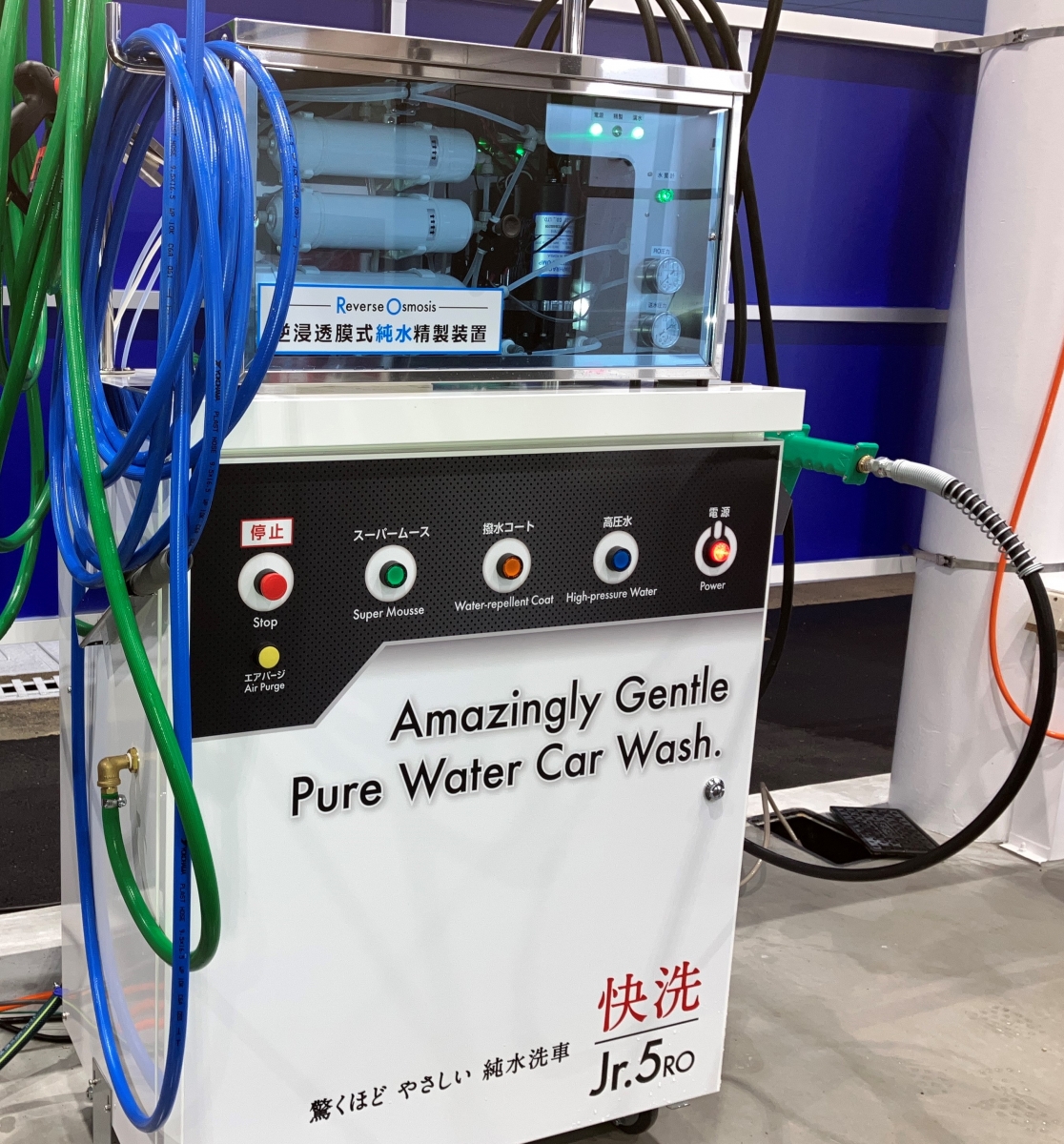 手洗い洗車は不純物を取り除いたこだわりの純水を使用しています。