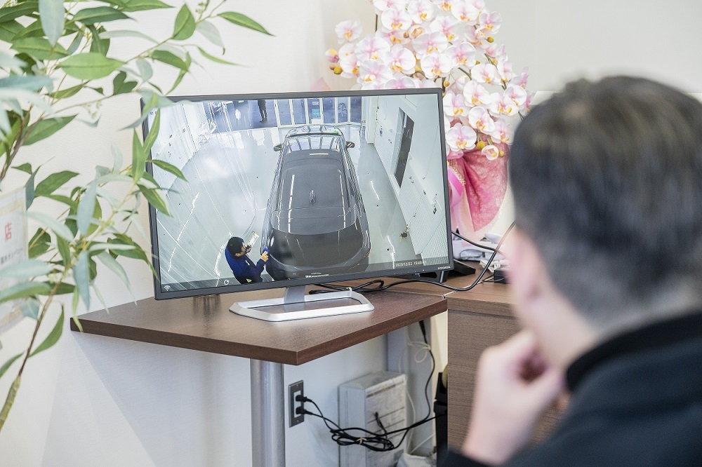 また、施工中の様子をモニター越しに御覧になれます。何かお気づきの点がありましたら、ご遠慮なくスタッフにお申し付けください。