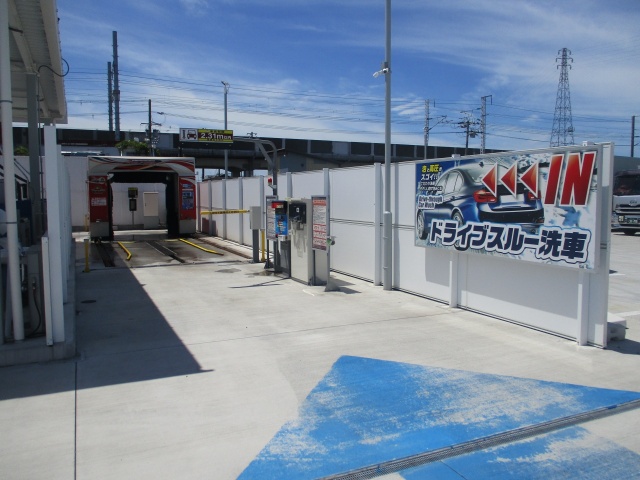 当店は最新型のスポンジブラシタイプのドライブスルー洗車機がございます。コーティング施工車専用のコースがございますので、お気軽にお使いいただけます。 拭き上げコーナーには地域唯一の屋根がついており、さらに掃除機と拭き上げタオルまで完備しておりますので、心ゆくまでお車を綺麗にしていただけます!
