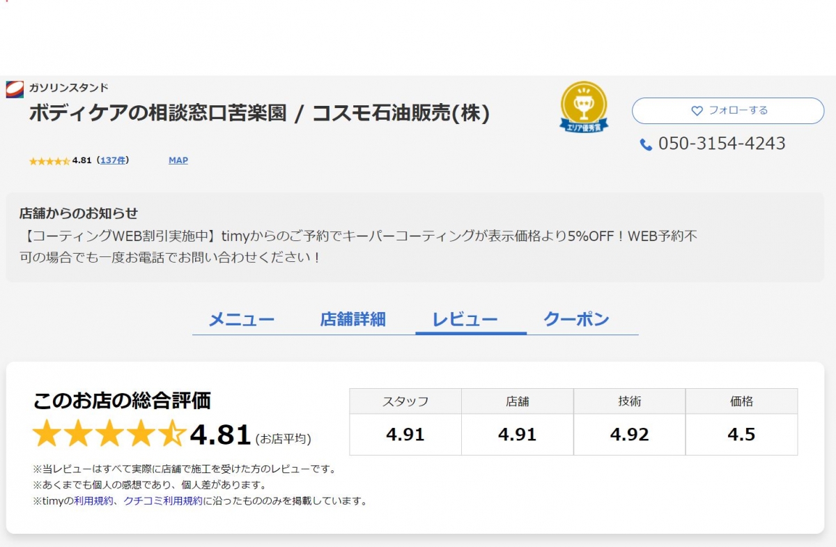 また、リペアの後は合わせてコーティングの施工をお勧めしております。