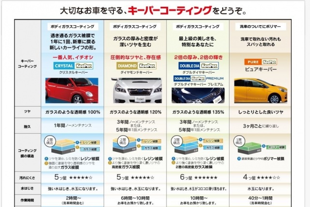 お客様のご要望にピッタリのボディガラスコーティングを4種類から選んでいただけます!
