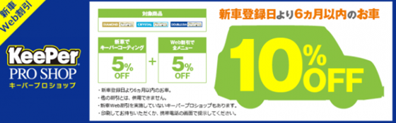 新車割引です。新車登録から6か月以内のお車の施工を5%オフさせていただきます!