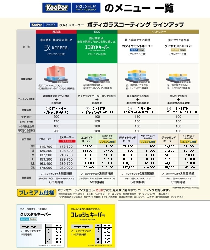 ダブルダイヤキーパーの3層からなるこのコーティングは、唯一keeperだけのコーティングです。ツヤ、輝き、保護能力、どれをとっても間違いない仕上がりです!