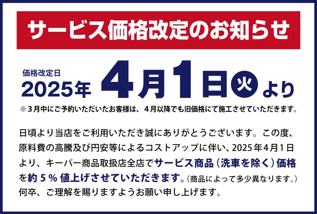 キーパーコーティングを施工して頂くお客様には、無料で代車をご用意しております。