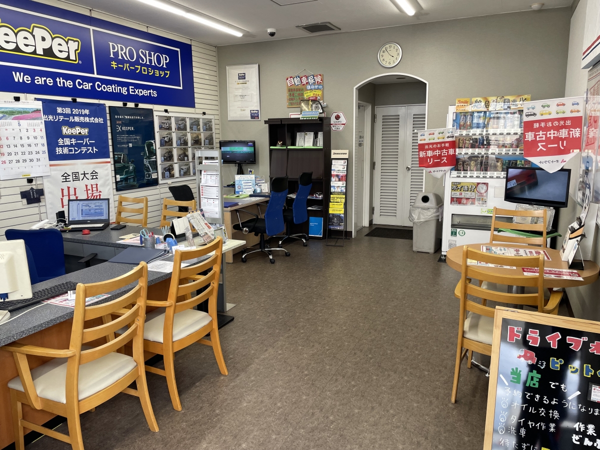 作業中は、雑誌などを取り揃えたゲストルームでゆったりとお待ちください。Wi-Fiも完備。 また、作業中でも何かお気づきの点がありましたら、ご遠慮なくスタッフにお申し付けください。 なお、店外へお出かけになり、後ほどお車の引き取りに来ることもできます