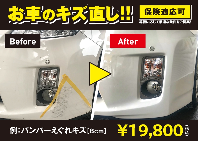 大切な愛車にキズが付いてしまったら... まずはご相談ください。 保険適応も可能です。