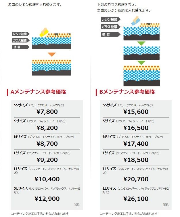 このBメンテナンスはダイヤモンドキーパー等だけでなく、他社のボディガラス