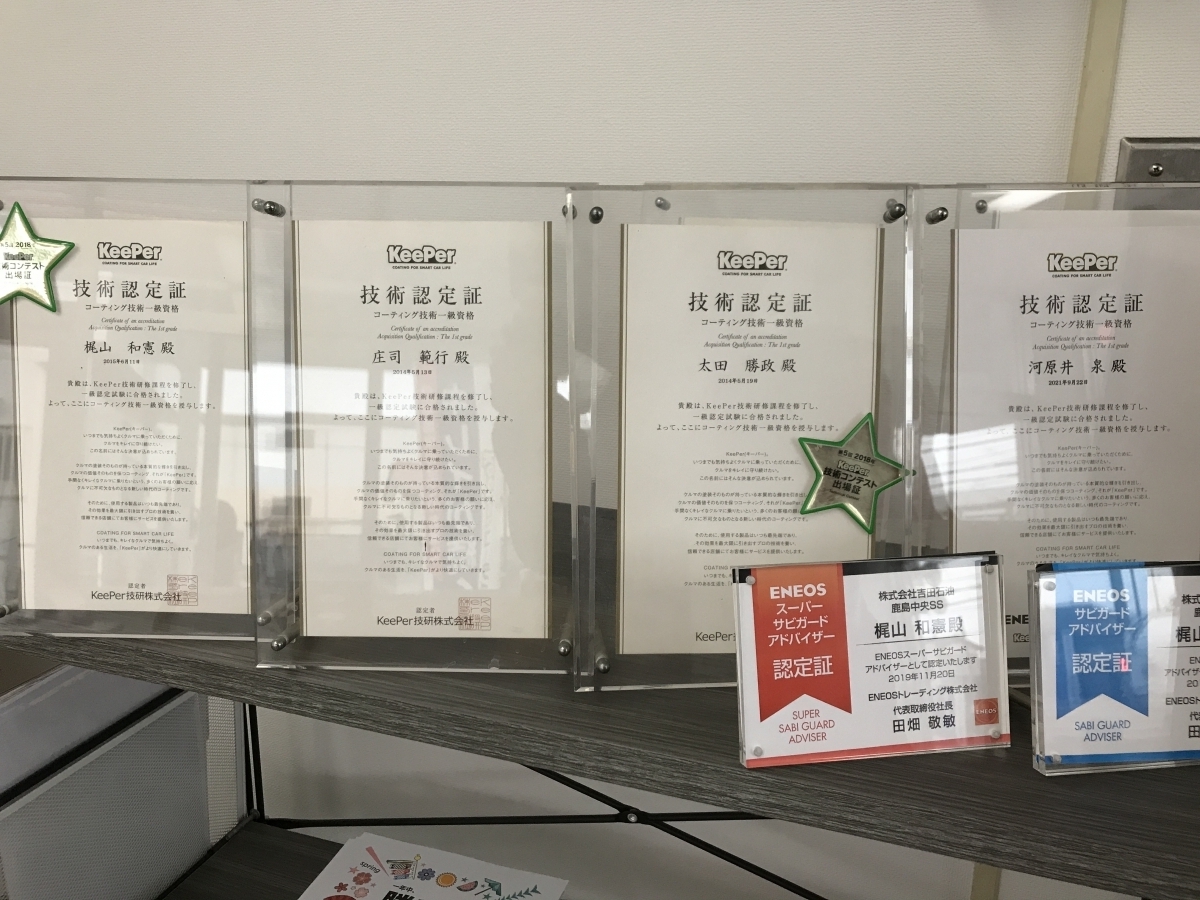 キーパープロショップには、コーティング技術1級資格者が在籍しています。