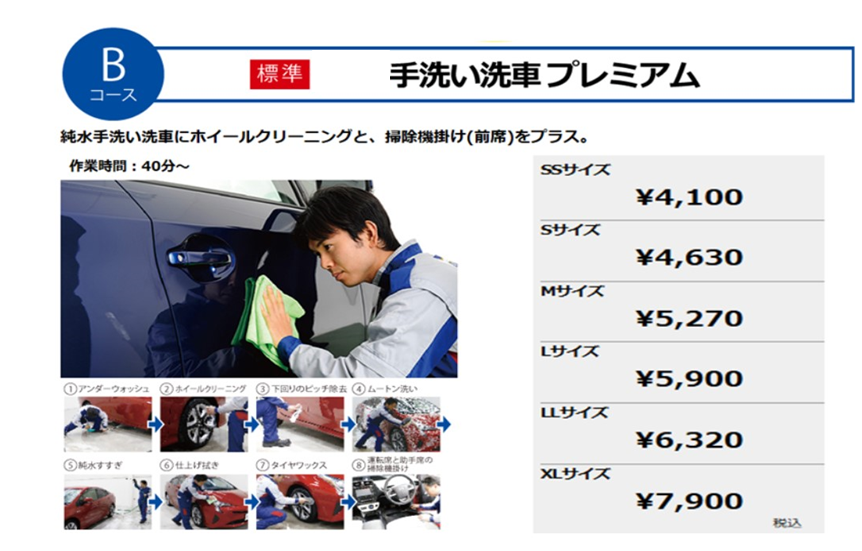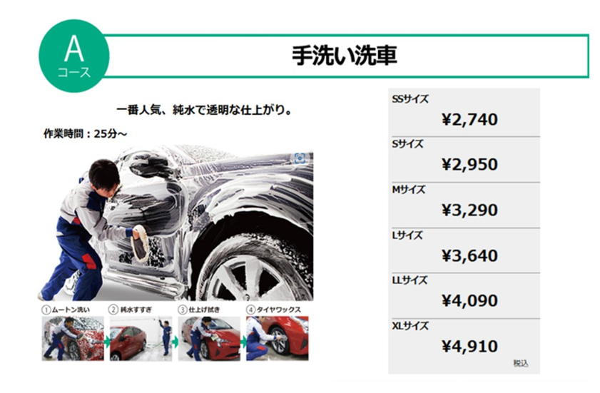 がセットになっているよりキレイがお得にできる手洗い洗車メニューです。