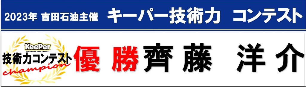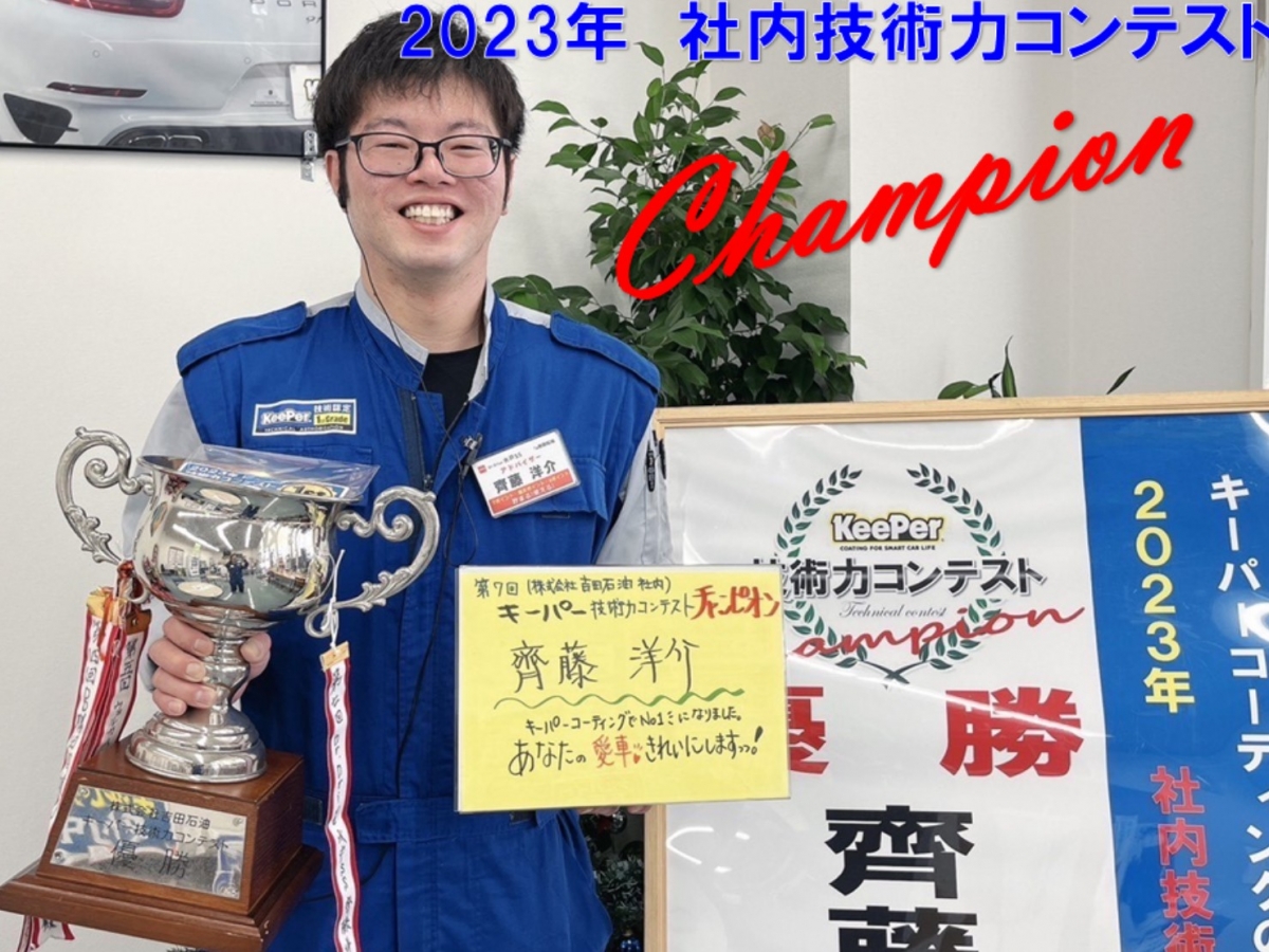 2023年11月3日に開催された、キーパーコーティングの施工技術を競う「社内キーパー技術力コンテスト」において、当店在籍齊藤 洋介が見事に優勝し社内チャンピオンの栄冠を手にしました。